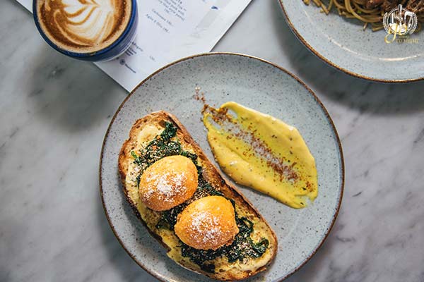“Blue Dye Café” มีเมนูอาหารฟิวชั่นสูตรเฉพาะและเครื่องดื่มเด็ดมากมายที่เน้นกาแฟเป็นซิกเนเจอร์ที่ไม่ควรพลาดมากที่สุด โดยเมนูที่เราอยากแนะนำก็มี Toast and Crumbed Egg, Moo-Nam-Tok Pasta, Green Sorbets, Chai Latte with Tofu Pudding, กาแฟ Masala Chai, Hot Latte และ Rhubarb & Rose Hip