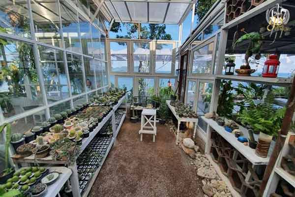 คาเฟ่ “ภูผาหน้าเล” จะมีโซนร้านอยู่ด้วยกัน 3 โซน ได้แก่ โซนเรือนกระจกใสขนาดใหญ่ที่เป็นโซนหลักอัดแน่นไปด้วยต้นไม้มากมายหลายชนิดที่หายาก ไม่ว่าจะเป็นต้นกระเช้าสีดา, เฟิร์นข้าหลวง, ต้นปรง, แคคตัส, จันผา และอื่น ๆ พร้อมตกแต่งแบบ้านอิฐสีขาวของอังกฤษที่บริเวณบาร์เครื่องดื่มมีชั้นวางของสะสมตะวันตกคลาสสิกหลายอย่างไม่ว่าจะเป็น Bottle, นาฬิกาตั้งโต๊ะโบราณ และของสะสมแนวพิพิธภัณฑ์อีกเยอะที่โดดเด่น อีกมุมหนึ่งจะจัดเป็นสวนต้นไม้และแสดงตู้เลี้ยงสัตว์เลื้อยคลานเขตร้อนชื้นติดผนังที่มีร่องรอยผ่านกาลเวลาสวยงามน่าเช็กอิน อากาศเย็นสบายมองเห็นวิวทะเลชัดเจนจากบานหน้าต่างได้ ดูมีความเป็นส่วนตัวแม้จะไม่มีแอร์ ติดกันจะเป็นโซนแกลอรี่แฮนด์เมดที่มีของตกแต่งเน้นสีสันจากไม้หลากหลายสวย ๆ มีศิลปะ และโซนสุดท้ายจะเป็นโซน Outdoor ที่ระเบียงใหญ่ยื่นออกจากหน้าผาสามารถมานั่งชมวิวทะเลได้เด่นที่สุด คนจะชอบมานั่งกันเยอะมากในยามเย็น