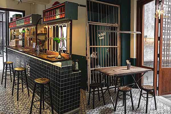 คาเฟ่ “Chufang” ตัวคาเฟ่เป็นบ้านหลังขนาดกะทัดรัดที่อยู่ในตึกแถวบริเวณตรอกเล็ก ๆ ที่มีความสงบ คนไม่พลุกพล่าน ด้านนอกจะทำออกมาเป็นร้านปูนเปลือยลอฟต์ ๆ ที่มีลวดลายศิลปะของสัตว์จีนเด่นเป็นสง่าให้นั่งและถ่ายรูปได้แบบชิค ๆ กับอีกด้านจะเป็นผนังของร้านแบบกรุด้วยกระเบื้องลายตารางขนาดเล็กทำให้มีความเป็นบ้านจีนยุคโมเดิร์นขึ้นมาหน่อย มีหน้าต่างเปิดแบบพับขึ้นมาเห็นข้างในได้ ซึ่งคนที่เลือกนั่งโซนด้านนอกนี้ก็จะได้อารมณืสุนทรีย์เสมือนรับประทานอาหารอยู่ในตรอกเล็ก ๆ ที่เป็นส่วนตัวในเมืองจีนสมัยก่อนมาก ส่วนโซนภายในจะเป็นร้านแบบ Open – Air เป็นประตูโล่ง มีพัดลมคลายร้อน ชุดโต๊ะกับเก้าอี้เป็นแบบร้านอาหารจีนสไตล์กวางตุ้ง ประดับด้วยเครื่องเรือนย้อนยุคมีค่าหลากสีสันตั้งแต่โคมไฟ ประตูบานพับลายไม้ของจีน กระเบื้องลายจีน กระป๋องน้ำเนื้อมันเงาสวยงาม และหนังสือพิมพ์ของจีนที่เรียงติดกันทำให้มีทั้งความหรูหราและความเรียบง่านผสานกันอย่างลงตัวมากตามฉบับร้านย้อนยุคที่แท้จริง