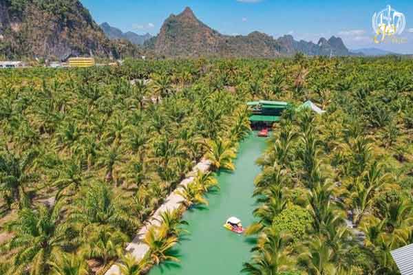 เราจะพูดในส่วนของคาเฟ่กันก่อน ซึ่งจะเป็นคาเฟ่โทนสีขาวสะอาดตา ถ้าดูจากมุมสูงจะดูสวยงามกลมกลืนไปกับใบไม้สีเขียวของใบสวนปาล์มที่ขึ้นกันเรียงรายเป็นระเบียบ และเป็นบริเวณกว้าง ทำให้บรรยากาศของที่นี่ร่มรื่นเป็นอย่างมาก ภายในไร่ยังมุมถ่ายภาพที่น่าสนใจหลายมุมเลยทีเดียว ใครชอบถ่ายภาพมาที่นี่รับรองไม่ผิดหวัง นอกจากนี้ในส่วนของสวนองุ่นจะเป็นเรือนเพาะองุ่นที่สามารถเข้าไปเดินชมได้ และในคาเฟ่ยังมีเมนูอาหารและขนมจากองุ่นให้เลือกชิมหลายรายการ สำหรับมุมถ่ายรูปสุดฮิตก็อย่างเช่น สะพานสีรุ้ง ชิงช้าริมสระ และที่นั่งรังนก เป็นต้น ไม่เพียงเท่านั้นหากใครอยากชมธรรมชาติแบบชิลๆ ที่นี่ยังมีเรือถีบให้นั่งเล่นออกกำลังกายในสระยาวที่อยู่ภายในสวนอีกด้วย