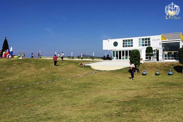 “Kirita Café” ตัวร้านคาเฟ่หลักตั้งตระหง่านบนยอดเขาท่ามกลางเนินเขาเตี้ยมากมายที่ทำให้เรารู้สึกเหมือนได้มายืนอยู่บนจุดชมวิวแถวเขาค้อสุด ๆ ตัวร้านคาเฟ่ถูกออกแบบในลักษณะของตู้คอนเทนเนอร์สีขาว 2 ชั้น ชั้นล่างเป็นร้านแอร์มีกระจกใสสามารถมองออกไปเห็นวิวเนินเขาคาเฟ่ที่มีความอลังการของสนามเนินหญ้ากว้างขวางเต็มไปด้วยทุ่งดอกไม้ ปะติมากรรมไอศกรีมและขนมหวานสีสันสดใสจำลอง ระเบียงกับสะพานริมผาชมวิวเทือกเขาฝั่งตรงข้ามที่ทอดตัวยาวโดดเด่นท่ามกลางป่าไม้ด้านล่าง อีกมุมหนึ่งของเนินเขาเดียวกันจะเห็นบ้านรีสอร์ตหลากสีของ Kirita Café เรียงรายกัน
