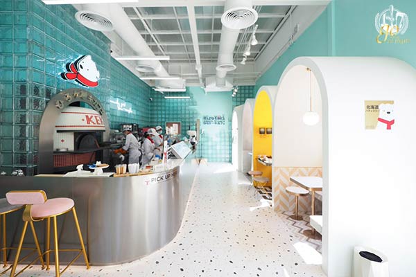 ร้าน “HIRO KEKI HOKKAIDO CAFÉ” ตัวร้านภายนอกจะเป็นร้านสีขาวแบบญี่ปุ่น ๆ ยุคใหม่ซึ่งมีสัญลักษณ์ของน้องหมีขาวเกาะฮอกไกโดและรูปปั้นสุดน่ารักให้เราได้กอดเล่นและถ่ายรูปกัน ส่วนคาเฟ่ภายในจะมีผนังแบบกระจกแข็งใสสีฟ้าอมเขียวอ่อน ๆ กว้างใหญ่ให้ฟีลเหมือนเราอยู่ในบ้านอิกลูของชาวเอสกิโมที่สวยงาม ตกแต่งด้วยกระถางต้นไม้สีเขียวตัดกับพื้นปูนที่จำลองว่าเป็นพื้นทรายได้แบบเนเจอรัลสมกับการรอคอยของคนที่เคนไปลองขนมหวานที่ญี่ปุ่นมาแล้วถูกใจมาก อีกทั้งที่นั่งก็ยังมีเป็นโซฟาภายในซุ้มสีทองหรู ๆ แบบโดมที่ดูเป็นส่วนตัวด้วย