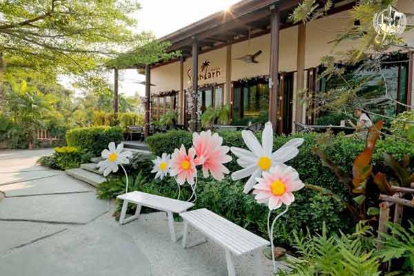 Suantarn Cafe คาเฟ่สไตล์ Thai tropical ภายในร้านจะแวดล้อมไปด้วยสวนสวยสีเขียวขจี ที่หนาแน่นไปด้วยต้นไม้น้อยใหญ่ ทั้งไม้ดอกและไม้ประดับนานาพรรณ รวมไปถึงต้นไม้สูงที่ให้ร่มเงาอยู่รอบบริเวณ บนเนื้อที่กว้างกว่า 2 ไร่ ทำให้บรรยากาศโดยรอบร่มรื่นสบายตา นอกจากนี้ภายในบริเวณร้านยังมีสระน้ำขนาดใหญ่ และบ้านทรงไทยตั้งอยู่ริมน้ำ ที่เปิดให้สามารถมาจัดงานเลี้ยง งานฉลอง และงานแต่งงานกันได้ ใครสนใจสามารถติดต่อกับทางร้านได้เลยนะคะ สำหรับโซนนั่งภายในร้านมีให้เลือกได้ทั้งแบบ Indoor และ Outdoor ด้านในตัวร้านยังออกแบบอย่างเรียบง่าย มีบรรยากาศสบายๆ อบอุ่นเหมือนอยู่บ้าน มีมุมให้เลือกนั่งค่อนข้างมาก รวมไปถึงมุมถ่ายรูปสวยๆ ก็เยอะมากด้วยเช่นกัน ใครกำลังมองหาคาเฟ่ที่ตั้งอยู่ท่ามกลางธรรมชาติ บรรยากาศเงียบสงบ มีเมนูอาหารคาว-หวาน ให้เลือกมากมาย ขอแนะนำเป็นที่นี่กันเลยค่ะ