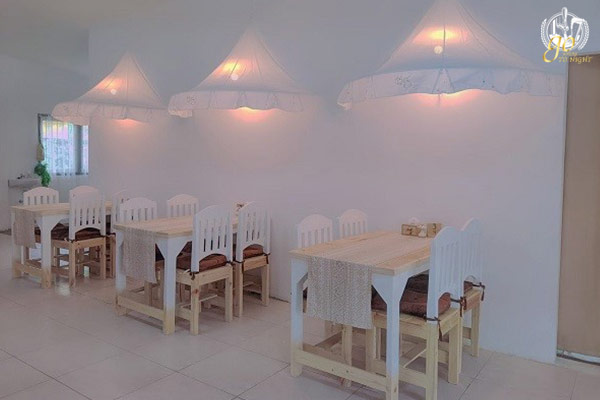 ร้านตั้งอยู่ในตัวบ้าน ที่มีรูปแบบน่ารักออกแบบสไตล์มินิมอล เป็นอาคารสีขาวขนาดชั้นเดียว ด้านหน้ามีสวนหย่อม และมีที่จอดรถกว้างขวาง ส่วนด้านในออกแบบตกแต่งในรูปแบบเรียบง่าย วัสดุอุปกรณ์ต่างๆ ภายในร้านจะเน้นใช้เป็นเฟอร์นิเจอร์ไม้ โดยเฉพาะโทนสีอ่อน ที่นอกจาจะช่วยทำให้ร้านดูปลอดโปร่ง กว้างขวาง ยังดูสะอาดตาอีกด้วย สำหรับโซนนั่งของทางร้านจะมีเฉพาะด้านใน ที่มีให้เลือกได้หลายมุม และยังมาพร้อมแอร์เย็นฉ่ำๆ กันอีกด้วย
