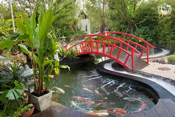“Ai Garden Café & Studio” เต็มไปด้วยบ้านที่ต้อนรับลูกค้าที่อยากจะมารับประทานอาหารดื่มเครื่องดื่มหรือมาพักผ่อนถ่ายรูปกัน โดยมีการสร้างบ้านญี่ปุ่นผสมผสานกับสถาปัตยกรรมแบบบ้านนอร์ดิกของตะวันตกที่กลมกลืนเข้ากันได้ดี มีจุดเช็คอินถ่ายรูปเด็ดๆตามสไตล์วัฒนธรรมญี่ปุ่นโบราณเยอะแยะ ไม่ว่าจะเป็นเสาโทริอิ, บ่อปลาคาร์ฟ, “Moon Gate” หรือประตูทรงกลมที่เชื่อมกับกำแพงล้อมรอบหลากทางเข้า – ออก และ สะพานโค้งสีแดง