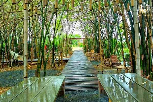 อย่างที่เรากล่าวไปแล้วตั้งแต่ต้นว่าที่จะแวดล้อมไปด้วยต้นไม้น้อยใหญ่ที่เป็นสีเขียวขจี และที่โดดเด่นที่สุดก็คือต้นไผ่นั่นเองค่ะ โดยทางร้านจะปลูกเรียงรายเป็นลักษณะเหมือนสุ่มต้นไผ่ และมีทางเดินเล็กๆ ให้เราสามารถเดินเล่นกันได้ ใกล้ๆ ยังมีโซนให้นั่งจิบเครื่องดื่มและทานอาหารกันได้อีกด้วย สำหรับตัวร้านจะสร้างอยู่ริมน้ำมีวัสดุส่วนใหญ่เป็นไม้และเป็นไม้ไผ่ ที่ต้องบอกว่าเข้ากับบรรยากาศเป็นอย่างมาก มองแล้วทำให้นึกถึงบ้านสวนร่มรื่นในต่างจังหวัด แต่ที่นี่กับอยู่ไม่ไกลจากตัวเมือง ที่เรียกได้ว่าเหมือนหลุดออกมาอยู่อีกโลกหนึ่งเลยทีเดียว บรรยากาศโดยรอบยังเงียบสงบและเย็นสบาย ที่สำคัญมุมนั่งยังมีให้เลือกเยอะมาก รวมถึงมุมถ่ายภาพสวยๆ ก็มีเยอะด้วยเช่นกัน ใครชอบถ่ายภาพรับรองได้เลยว่ามาที่นี่ต้องถูกใจคุณอย่างแน่นอน รวมไปถึงท่านใดที่อยากสัมผัสธรรมชาติแบบใกล้ชิดในสวนสวยที่อยู่ไม่ไกลจากกรุงเทพ ต้องห้ามพลาดแวะมาที่นี่กันนะคะ
