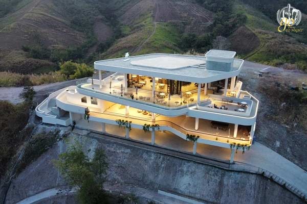 ที่นี่จะเป็นทั้งคาเฟ่และร้านอาหารตั้งอยู่บนยอดเขา ในส่วนของตัวร้านบริเวณด้านนอกตัวอาคารจะคุมโทนด้วยสีขาวที่ดูโดดเด่นสะดุดตา ส่วนบริเวณด้านในตามส่วนต่างๆ จะตัดด้วยสีน้ำตาลที่เป็นทั้งโทนอ่อนและโทนเข้ม รวมไปถึงสีเทา ที่ช่วยเพิ่มมุมมองที่มีมิติมากยิ่งขึ้นให้กับตัวร้านได้เป็นอย่างดี ไม่เพียงเท่านั้นนะคะ ตัวร้านยังมีพื้นที่ค่อนข้างกว้างมาก เป็นตัวอาคารขนาด 3 ชั้น ที่บริเวณชั้นล่างเป็นอาคารจอดรถ สำหรับโซนนั่งจะเป็นในส่วนของชั้นสองและชั้นสาม ที่มีให้เลือกได้ทั้งแบบ Indoor และ Outdoor เชื่อแน่ว่าหลายคนน่าจะสนใจโซนริมระเบียงด้านนอกกันอย่างแน่นอน เพราะตรงจุดนี้เราจะสามารถชมวิวทิวทัศน์แบบมุมสูงได้กว้างไกลสุดสายตากันเลยทีเดียว รวมทั้งยังมองเห็นวิวสวยๆ ของกังหันลมได้อีกด้วย ภายในร้านออกแบบตกแต่งในสไตล์โมเดิร์นผสมผสานกับสไตล์มินิมอลที่ดูเข้ากันได้อย่างลงตัว ที่สำคัญมีมุมสวยๆ ถ่ายภาพเยอะมาก