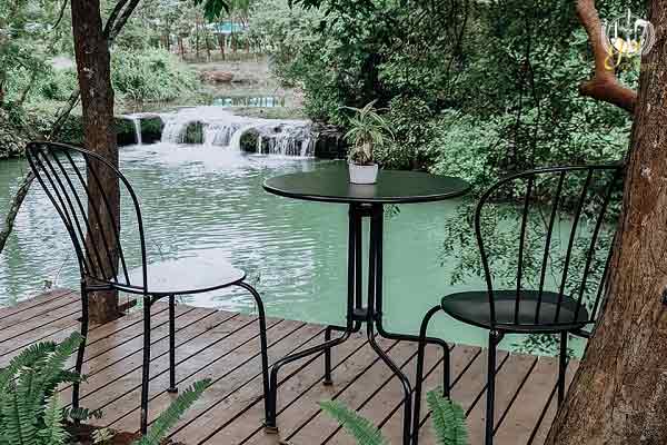 คาเฟ่ตั้งอยู่ริมน้ำธารน้ำตก แวดล้อมด้วยต้นไม้ที่ขึ้นอย่างหนาแน่น รอบบริเวณยังถูกออกแบบให้เป็นสวนสวย บรรยากาศร่มรื่น เหมาะสำหรับการนั่งเล่นพักผ่อน จิบกาแฟหรือเครื่องดื่มแก้วโปรด พร้อมทานอาหารอร่อยๆ และนั่งฟังเสียงน้ำไหล หรือเสียงต่างๆ ตามธรรมชาติ ไม่ว่าจะเป็น เสียงลมพัด หรือเสียงนกร้อง นอกจากนี้คุณยังจะได้สูดอากาศบริสุทธิ์กันได้อย่างเต็มปอด ในส่วนของตัวคาเฟ่เป็นลักษณะอาคารสองชั้น ออกแบบสไตล์โมเดิร์นที่เน้นความสูงโปร่งเป็นหลัก มีโซนให้เลือกนั่งได้ทั้งด้านนอกและด้านใน แต่หลายคนหากมาเห็นบรรยากาศต้องเลือกนั่งรอบนอกอย่างแน่นอน เพราะนอกจากบรรยากาศจะดีแล้ว วิวทิวทัศน์ยังสวยงามเป็นอย่างมาก โดยเฉพาะใครที่เดินทางมาในช่วงฤดูฝน น้ำตกของที่นี่จะมีน้ำอยู่เต็ม และทัศนียภาพในช่วงนี้จะสวยงามกว่าช่วงอื่นอีกด้วย เรียกได้ว่าเป็นอีกหนึ่งจุดหมายปลายทางที่น่าสนใจ