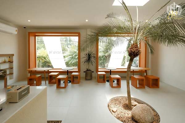 เข้าในบริเวณของทางร้านจะได้อารมณ์เหมือนเดินมาในเมืองทะเลทรายกันเลยทีเดียวค่ะ ส่วนตัวร้านจะเป็นอาคารชั้นเดียว โทนสีออกแนวครีมไปทางน้ำตาลอ่อนๆ มีต้นไม้เมืองร้อนปลูกไว้โดยรอบ โดยเฉพาะต้นตะบองเพชรจะมีหลากหลายสายพันธุ์ ด้านนอกว่าสวยแล้วด้านในก็มีการออกแบบตกแต่งในธีมทะเลทราย ที่สวยชวนมองไม่แพ้กัน แถมทั้งด้านนอกและด้านในยังมีมุมถ่ายภาพสวยๆ ที่ได้บรรยากาศเหมือนทะเลทรายค่อนข้างเยอะอีกด้วย ใครอยากได้มุมภาพในลักษณะดังกล่าว บอกเลยมาที่นี่ไม่ผิดหวัง แล้วอย่าลืมแต่งตัวให้เข้ากับบรรยากาศกันด้วยนะคะ สำหรับโซนนั่งของทางร้านจะมีให้เลือกทั้งแบบ Indoor และ Outdoor แต่เห็นเป็นเหมือนทะเลทรายแบบนี้ ด้านนอกก็ไม่ได้ร้อน เพราะมีเงาของร่มไม้ และด้วยความที่เป็นพื้นที่โล่งจึงมีลมพัดเอื่อยๆ อยู่เกือบตลอดทั้งวัน ไม่เพียงเท่านั้นนะคะทางร้านยังยินดีต้อนรับสัตว์เลี้ยงอีกด้วย หรือก็คือเป็น Pet friendly แบบ 100% เลยทีเดียว โดยสัตว์เลี้ยงสามารถเข้าได้ทุกโซน รวมไปถึงโซนห้องแอร์ก็เช่นกัน แต่อย่าลืมช่วยกันรักษาความสะอาด และอย่าให้น้องๆ รบกวนลูกค้าท่านอื่นก็พอ