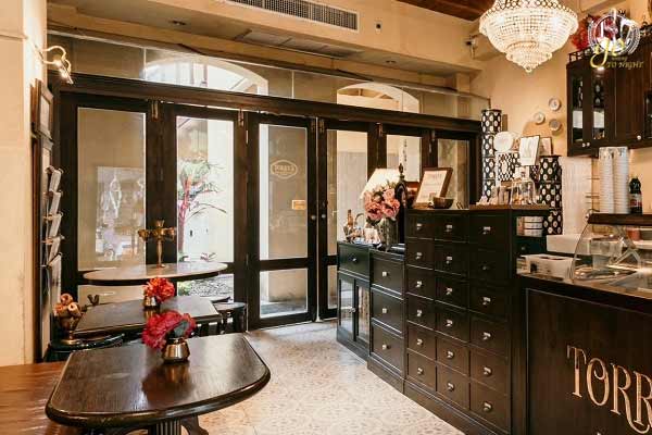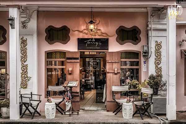 ร้านตั้งอยู่ภายในอาคารสไตล์ชิโนโปรตุกีส ผสมผสานกับการออกแบบในแนวเพอรานากัน ไม่ว่าจะเป็นช่องหน้าต่างที่มีลักษณะโค้งมน ลวดลายฉลุที่ผนัง และระเบียงชั้นสองที่กว้างขวาง ตัวร้านยังออกแบบโดยคุมโทนด้วยสีชมพูพาสเทลและสีขาวครีม ที่ดูหวานโดดเด่นสะดุดตา บอกได้เลยว่าการออกแบบทั้งหมดสามารถผสมผสานกันได้อย่างลงตัว ส่วนด้านในร้านออกแบบตกแต่งสไตล์วินเทจ ด้วยเฟอร์นิเจอร์แบบย้อนยุคโทนสีน้ำตาลเข้ม และผนังสีเหลืองนวล ไม่เพียงเท่านั้นนะคะยังมาพร้อมชุดจานชามที่เป็นเครื่องทองเหลืองสวยหรู ทั้งกาน้ำชา ถ้วย และจานชามต่างๆ ทั้งหมดเข้ากันได้ดีอย่างลงตัวกับบรรยากาศภายในร้าน