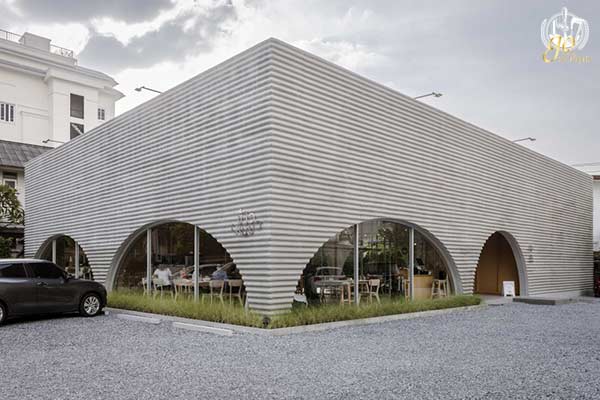 ร้าน “Khao Niao & Onda Café” ตัวร้านจะเป็นอาคารคุมโทนสีขาวทรงสี่เหลี่ยมเป็นลายขวางสลักยาว ๆ พร้อมไฮไลต์ของประตูและหน้าต่างทรงโค้งสวยที่เรียงรายกันซึ่งภายในก็เป็นร้านกระจกที่สามารถเห็นสวนหย่อมสีเขียวสดชื่นได้ ห้องรับประทานอาหารจะตกแต่งในสไตล์ลอฟต์ให้ดูมีกลิ่นอายของความเรียบง่ายเข้ากับประเภทอาหารอีสานที่ใคร ๆ ก็อยากให้อยู่กับความสโลว์ไลฟ์ซอฟต์ด้วยเช่นกัน โต๊ะที่รองรับลูกค้ามักจะเป็นโต๊ะยาวสำหรับให้ลูกค้ามารับประทานกันเป็นหมู่คณะ