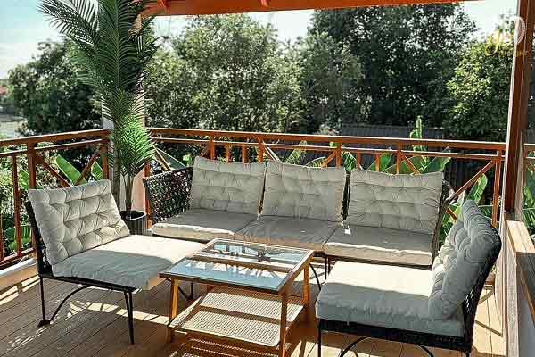 ภายในร้านมีพื้นที่กว้างขวาง ตัวร้านเป็นอาคารขนาด 2 ชั้น สวยโดดเด่นคุมโทนด้วยสีน้ำตาลและสีขาว ออกแบบตกแต่งในสไตล์ไทยร่วมสมัย ตั้งอยู่ติดริมแม่น้ำเจ้าพระยา บรรยากาศอบอุ่น เป็นกันเอง อารมณ์เหมือนนั่งทานอาหารอยู่ในบ้านกันเลยทีเดียว สำหรับมุมนั่งก็มีให้เลือกเยอะพอสมควรที่เป็นทั้งแบบ Indoor และ Outdoor รวมไปถึงโซนลานระเบียงบนชั้นสอง ที่สามารถมองเห็นวิวทิวทัศน์ได้ไกลสุดสายตา โดยเฉพาะวิวแม่น้ำบอกได้เลยว่าสวยทุกช่วงเวลาเลยทีเดียวค่ะ แต่ที่แน่ๆ ก็คือยามค่ำคืนยังดูโรแมนติกอีกด้วย โดยโซน Indoor ยังมาพร้อมแอร์เย็นฉ่ำและผนังกระจกใสที่ช่วยให้มองเห็นวิวทิวทัศน์ได้อย่างชัดเจน ส่วน Outdoor ก็ไม่ร้อนนะคะ เพราะมีลมแม่น้ำพัดเอื่อยๆ ขึ้นมาตลอดทั้งวัน สำหรับเก้าอี้ยังมีทั้งแบบ โซฟานุ่มๆ หรือเก้าอี้พร้อมเบาะนุ่มๆ นั่งสบายๆ ให้เลือกได้หลากหลายรูปแบบ ใครชอบแบบไหนก็เลือกกันได้ตามอัธยาศัยเลยนะคะ