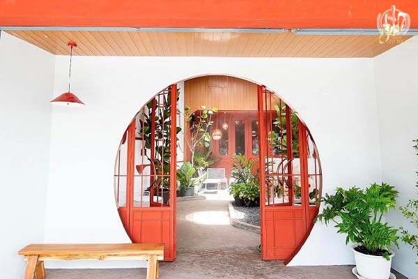 อย่างที่กล่าวไปแล้วว่าคาเฟ่แห่งนี้ตกแต่งเป็นสไตล์จีนร่วมสมัย ที่รีโนเวทจากตึกเก่าให้กลับมาสวยสดใสมีชีวิตชีวา หน้าร้านมีรูปปั้นสิงห์ 2 ตัว คอยต้อนรับผู้มาเยือน การออกแบบทั้งภายนอกและภายในร้านจะเน้นใช้เป็นโทนสีแดงสลับขาว ออกแนวโปร่งโล่งสบาย เป็นลักษณะสามชั้น ที่ผสมผสานการตกแต่งทั้งแบบจีนโบราณ และเฟอร์นิเจอร์สมัยใหม่ได้อย่างลงตัวสวยงาม ไม่เพียงเท่านั้นนะคะ ด้านในยังดูร่มรื่น มองสบายตา สำหรับที่นั่งให้เลือกหลากหลายมุม โดยโซนนั่งจะมีให้เลือกทั้งแบบ Indoor และ Outdoor ด้านในเลือกนั่งได้ในส่วนของชั้นที่ 1 และ ชั้นที่ 2 ส่วนชั้นที่ 3 จะเป็นห้องจัดประชุม