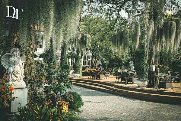 เดี๋ยวนี้ใจกลางกรุงบ้านเรามีคาเฟ่ที่มีบรรยากาศร่มรื่น นั่งชิลชิล แวดล้อมไปด้วยต้นไม้นานาพรรณ ที่เป็นสีเขียวขจี เปิดขึ้นมากมาย เข้ามาด้านในอาจรู้สึกเหมือนหลุดไปอยู่ย่านชานเมืองหรือแหล่งท่องเที่ยวตามต่างจังหวัดกันเลยทีเดียว อย่างเช่นที่ De Chote Café & Living Room ก็เป็นอีกแห่งหนึ่งเช่นกัน โดยคาเฟ่แห่งนี้จะตั้งอยู่ในย่านเพชรเกษม ย่านที่มีการจราจรค่อนข้างหนาแน่น แต่ก็ยังพื้นที่สีเขียวให้เราได้นั่งเล่นพักผ่อน จนลืมความวุ่นวายด้านนอกกันไปได้เลย ที่สำคัญทางร้านยังรับจัดงานเลี้ยง โดยเฉพาะงานแต่งงาน หรือจะใช้สำหรับเป็นสถานที่พรีเวดดิ้งก็ได้อีกด้วย บอกได้เลยว่ามีมุมถ่ายภาพสวยๆ เยอะมาก ไม่เพียงเท่านั้นนะคะยังมีเมนูอาหารอร่อยให้เราเลือกรับประทานหลากหลายเมนู มาถึงตรงนี้ใครเริ่มรู้สึกสนใจ ในบทความนี้เรามีบรรยากาศของ De Chote Cafe & Living Room มาฝากกันค่ะ
