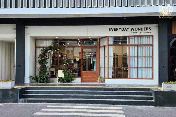 “Everyday Wonders Flower Café” เป็นร้านขนาดย่อมที่อยู่ชั้นล่างของตึกในโครงการ มองภายนอกจะเห็นเหมือนเป็นร้านที่อยู่ในสตรีทที่ต่างประเทศ มีทางม้าลายให้เดินข้ามและถ่ายรูปเช็กอินได้แบบชิค ๆ ซึ่งพอเข้ามาข้างในร้านคาเฟ่ที่คุมโทนสีขาว ตกแต่งด้วยเฟอร์นิเจอร์ไม้สักและของกระจุกกระจิกเรียบง่ายเหมือนบ้านหลังหนึ่ง เช่น หนังสือ รูปปั้น กระจก กระถางดอกไม้ตะวันตกสีสดใส เป็นต้น และอีกโซนที่คุมโทนสีครีมจะเป็นโซนเรียนจัดดอกไม้และร้านดอกไม้ มีหน้าต่างบานใหญ่ให้สามารถเห็นวิวเมืองกรุงด้านนอกได้
