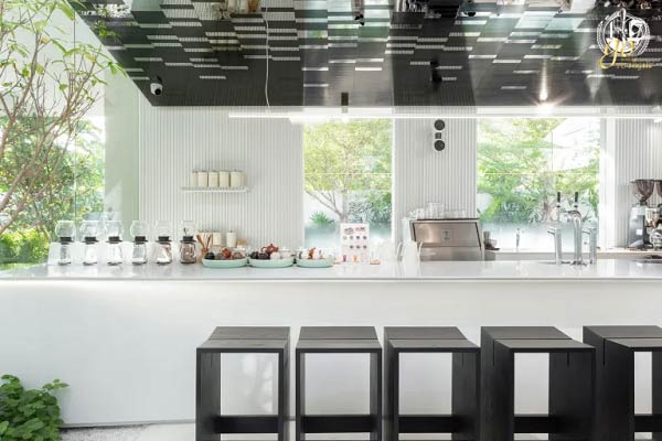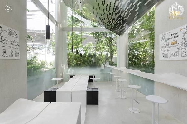 ร้านออกแบบในโทนสีขาวสว่างทั้งภายนอกและภายใน ดูสวยโดดเด่น สะอาด และสะดุดตา ส่วนตัวร้านจะเป็นเรือนกระจก Glass House ที่ภายในร้านสามารถรับแสงจากภายนอกได้อย่างเต็มที่ นอกจากนี้ด้านในยังออกแบบในสไตล์มินิมอล เรียบง่ายแต่สวยหรูดูดี ส่วนบริเวณด้านนอกถูกจัดให้เป็นสวนสวยสีเขียว ดูร่มรื่น โดยเฉพาะสีเขียว ๆ ของใบไม้ตัดกับสีของตัวอาคารสีขาว ยิ่งทำให้ร้านดูสะดุดตามากยิ่งขึ้น ภายในร้านมีมุมให้เลือกนั่งเยอะพอสมควรทั้งแบบ Indoor และ Outdoor แต่ด้วยความที่กาแฟและชาของที่นี่มีรสชาติเป็นเอกลักษณ์ไม่เหมือนใคร และยังอร่อยแบบลงตัว ถึงแม้จะมีราคาค่อนข้างสูงก็ยังทำให้มีลูกค้าเข้ามามากพอสมควร ช่วงคนเยอะ ๆ อาจมีที่นั่งไม่พอกันเลยทีเดียว นอกจากนี้ในส่วนกลางของตัวร้านจะเป็นที่ตั้งของโต๊ะกาแฟตัวยาว แต่พื้นโต๊ะไม่ได้เรียบสนิท เนื่องจากทางร้านตั้งใจให้ลูกค้าหรือผู้เข้ามาใช้บริการโฟกัสกับชาหรือกาแฟแก้วโปรดกันเป็นพิเศษ เพราะถ้าไม่ระวังอาจทำกาแฟหกได้นั่นเองค่ะ