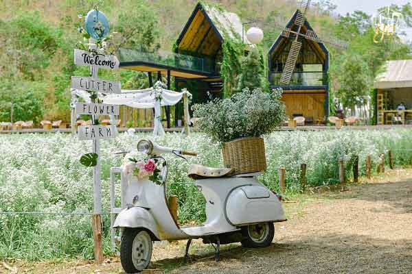 ภายในร้านจะแวดล้อมไปด้วยธรรมชาติ โดยด้านหลังจะติดทิวเขา ส่วนด้านหน้าจะเป็นทะเลสาบขนาดใหญ่ รอบบริเวณยังหนาแน่นไปด้วยพืชพรรณนานาชนิด ทั้งไม้ดอก ไม้ประดับ มองเห็นเป็นสีเขียวออกแนวกรีนซีซั่น (Green Season) กันเลยทีเดียวค่ะ มองดูเขียวขจี ชุ่มชื่น สบายตา แถมอากาศดี และเย็นสบาย ส่วนตัวร้านจะเป็นอาคารไม้ไผ่ที่มีกังหันลมอยู่ด้านหน้า ดูเข้ากับบรรยากาศโดยรอบเป็นอย่างมาก นอกจากนี้ไฮไลต์อีกอย่างที่น่าสนใจของตัวร้านก็คือ Sky Walk โดยบริเวณนี้เราจะสามารถชมวิวทิวทัศน์ได้กว้างไกลสุดสายตากันแบบพาโนรามาเลยทีเดียว ใครชอบถ่ายรูปต้องห้ามพลาดมุมนี้อย่างเด็ดขาด ไม่เพียงเท่านั้นนะคะ นอกจากนี้รอบบริเวณร้านยังมีโซนต้นไม้ต่างๆ ที่ปลูกเอาไว้ให้สามารถเดินชมกันได้ตั้งแต่โซนต้นแคคตัส หรือต้นกระบองเพชร หลากหลายสายพันธุ์ เป็นโซนที่จำลองบรรยากาศเหมือนอยู่ในทะเลทราย ต่อด้วยโซนทุ่งคัตเตอร์ ดอกไม้ดอกเล็กๆ สีขาว ที่ช่วงฤดูออกดอกจะบานสะพรั่งเต็มทั้งท้องทุ่ง บอกได้เลยว่าสวยมากๆ โดยดอกคัตเตอร์จะมีเป็นสีม่วงและสีขาว แต่ของที่นี่จะเป็นสีขาวบริสุทธิ์ เวลาออกดอกพร้อมๆ กันจะดูสวยและขาวสะอาดตา