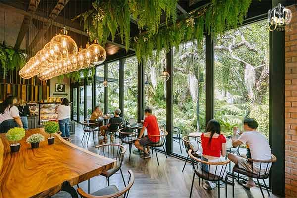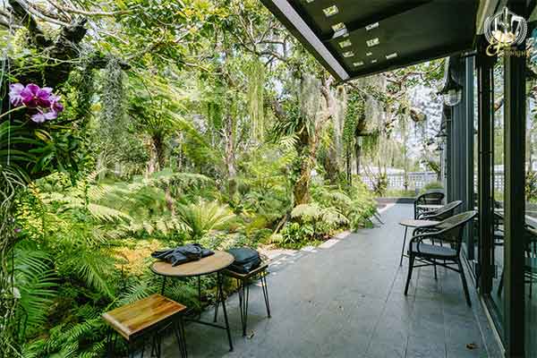 คาเฟ่ “10cc Coffee & Co.” จะเน้นไปในโซน indoor ที่ถูกออกแบบมาให้เป็นคาเฟ่บ้านเรือนกระจก หรือ Glasshouse ที่มีแอร์เย็นฉ่ำ อยู่ในอาคาร 2 อาคาร ซึ่งมีทั้งมุมรองรับลูกค้าทั่วไปสำหรับมานั่งชิลล์ ๆ รับประทานอาหาร ดื่มเครื่องดื่ม มุมทำงาน และมุมจัดเลี้ยงหรือประชุมที่สำคัญ ๆ แบบแยกกันต่างหากชัดเจน จึงรองรับผู้ที่มาได้อย่างเจาะจงกว้างขวางอย่างมาก มองเห็นสวนได้ 360 องศาด้วย พร้อมโคมไฟที่ห้อยลงมาอย่างสวยงามแบบบ้านตะวันตกในป่าใหญ่ที่เงียบสงบ