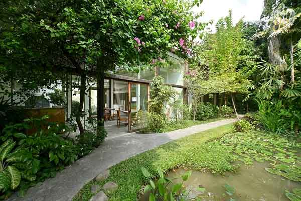 คาเฟ่ตั้งอยู่ท่ามกลางสวนในบรรยากาศร่มรื่น ที่ปกคลุมไปด้วยต้นไม้ใหญ่สีเขียวขจี ตามคอนเซ็ปต์ Organic Living ของทางร้าน ส่วนด้านในจะออกแบบให้เป็นกระจกใสในลักษณะกลาสเฮ้าส์ ที่ให้ความรู้สึกโปร่งโล่งสบายตา ตัวร้านยังสร้างมาจากไม้เก่าที่นำมาจากแพในสวนสามพราน ภายในออกแบบให้มีเพดานสูง ล้อมรอบด้วยกระจกใส ที่นอกจากเราจะได้ชมธรรมชาติจากภายนอกได้อย่างชัดเจนแล้ว ด้านในยังรับแสงสว่างจากธรรมชาติได้อย่างเต็มที่อีกด้วย รวมถึงเฟอร์นิเจอร์และวัสดุต่างๆ ภายในร้านก็ยังเน้นที่ทำมาจากไม้โดยเฉพาะ ที่มองดูแล้วเข้ากับบรรยากาศโดยรอบได้เป็นอย่างดี สำหรับโซนนั่งจะมีให้เลือกทั้งด้านในและด้านนอก และมีให้เลือกได้ค่อนข้างเยอะ แต่ถ้าหากคุณชอบอยู่ใกล้ชิดกับธรรมชาติแนะนำเป็นด้านนอกกันนะคะ โดยจะมุมให้เลือกนั่งทั้งใต้ต้นไม้ หรือริมสระบัวกันเลยทีเดียว มานั่งรับประทานอาหารบริเวณนี้จะสัมผัสได้ถึงบรรยากาศที่อบอุ่น เป็นกันเอง เหมือนอยู่บ้าน
