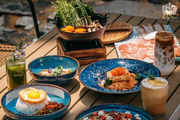 เมนูของทางร้านจะมีเป็นประเภทอาหารจานหลักทั้งอาหารไทย และอาหารนานาชาติ รวมไปถึงขนมหวาน เบเกอรี่ เค้ก ไอศครีม และเครื่องดื่มทั้ง Coffee และ Non-Coffee สำหรับเมนู อื่นๆ ที่เราอยากจะแนะนำก็อย่างเช่น ผัดไทยกุ้งเทมปุระ, ข้าวผัดทรัฟเฟิลหน้าเนื้อ, ยำปลาหมึกปลาร้าญี่ปุ่น, ข้าวโพดเทมปุระ, ซีซาร์สลัด และ ชุดหมูกระทะ ที่มีให้เลือกทั้งแบบชุดเนื้อล้วน ชุดผักล้วน และชุดรวมมิตร ส่วนเครื่องดื่มก็อย่างเช่น Matcha Orange, Matcha Latte, Corn Cheese Coffee และ Lemonade Snow Coffee เป็นต้น