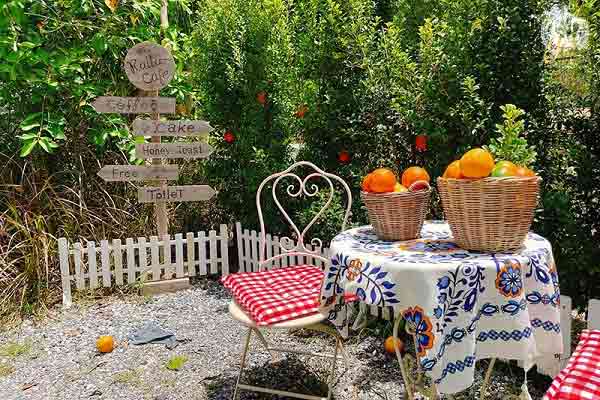 เป็นคาเฟ่ที่ตั้งอยู่ในจังหวัดระยอง ภายในร้านจะเป็นสวนส้ม แต่ก็มีพรรณไม้อื่นขึ้นอย่างหนาแน่น ทำให้ที่นี่มีบรรยากาศร่มรื่นเป็นอย่างมาก แถมยังมีมุมถ่ายรูปสวยๆ ให้เลือกหลากหลายมุมอีกด้วย เชื่อแน่ว่าต้องถูกใจสายเชลฟี่อย่างแน่นอน การออกแบบตกแต่งสวนยังเป็นสไตล์เหมือนสวนสวยๆ ในอังกฤษ ที่มาพร้อมเมนูอาหารให้เลือกมากมาย โดยเฉพาะรายการอาหารหวานและเครื่องดื่ม หากใครสนใจสามารถเดินทางมาได้ทุกวันร้านเปิดตั้งแต่เวลา 8.00-18.00 น. โดยร้านจะตั้งในพื้นที่ ตำบลหนองตะพาน อำเภอบ้านค่าย จังหวัดระยอง พิกัด >> https://goo.gl/maps/GZvEaLKZB461eGDYA