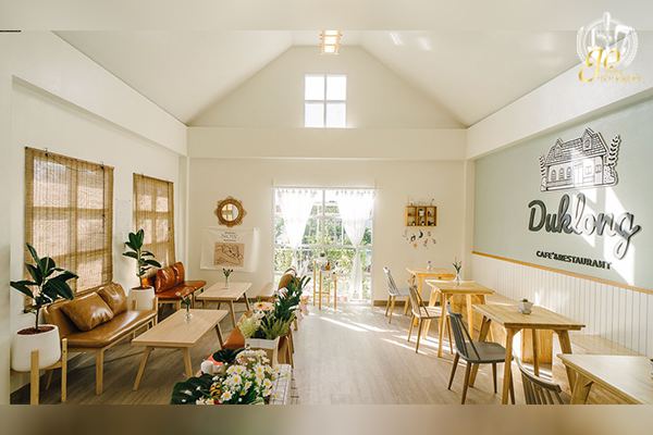 “Duklong Café” ตัวร้านคาเฟ่จะมีความเป็นบ้านมินิมอลปรับอากาศขนาดใหญ่เน้นโทนสีขาวครีมสบายตาที่ตกแต่งกระจุกกระจิกเล็กน้อยตามผนังให้ความรู้สึกเหมือนอยู่ในบ้านที่มีความเรียบหรูสามารถชมวิวคลองที่เปิดน้ำพุให้ความมีชีวิตชีวาจากทางหน้าต่างบานใสพร้อมรับประทานอาหารอร่อย ๆ ได้อย่างเพลิดเพลินใจ หรือหากใครจะนั่งรับกลิ่นอายธรรมชาติบริสุทธิ์นอกร้านก็มีลานที่นั่งแบบสมัยใหม่ให้ชมคลองและสวนสีเขียวอย่างใกล้ชิดได้เช่นกัน ไฮไลท์ของร้านจะอยู่ในช่วงเย็นที่คุณสามารถเห็นวิวพระอาทิตย์ตกดินริมคลองได้อย่างสวยงามน่าประทับใจจนลืมไม่ลงเลย อยู่ในเมืองก็ซึมซับบรรยากาศริมคลองสวย ๆ ของต่างจังหวัดเล็ก ๆ ได้แล้วแค่มาดูคลองคาเฟ่